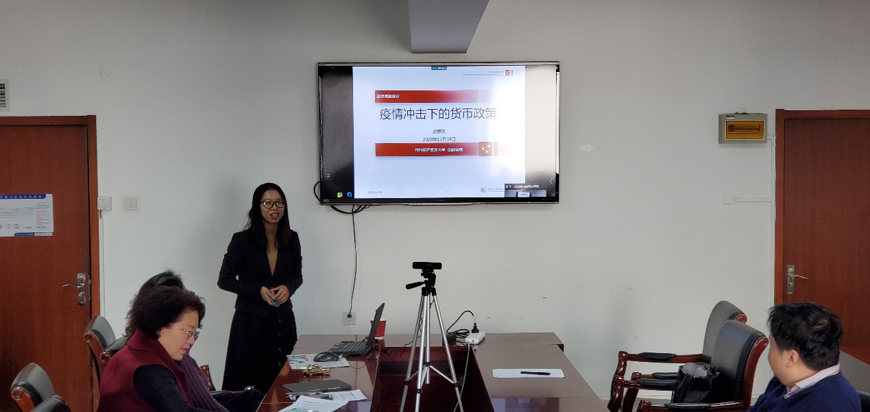 来自金融学专业的教师姜婷凤以“疫情冲击下的货币政策”为题,向大家演示了货币银行学课程中“货币政策传导机制”内容。她在讲解货币政策传导机制过程中,有机融入了个人人生规划;在分析新冠肺炎病毒疫情爆发带来的影响和冲击时,强调加强时事政治学习的重要性,并举例说明在疫情爆发后,通过分析中央召开的一系列会议精神和出台的各种政策,能够帮助学生正确把握当前我国货币政策的目标、手段以及带来的数字货币改革等。