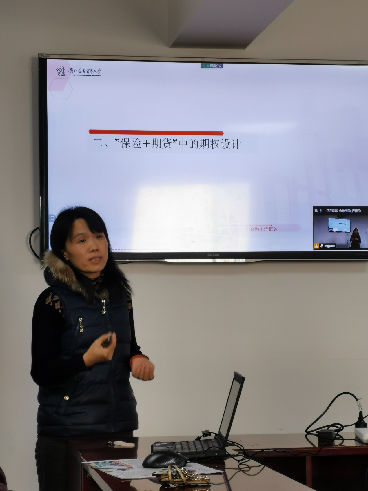 来自金融工程专业的教师冯建芬以“金融工程在产品创新中的应用——基于更改条款的金融产品结构化创新”为题,向大家演示了金融工程学课程中有关“保险+期货”的期权设计内容。她通过分析实际中的案例,深入浅出地讲解了金融产品由简单到复杂的设计过程,向大家展示了金融工程学在现实中是如何为农民利益服务的,并由此升华到每一名学生都应当认真学习,才能将知识转化为生产力,切实为人民服务。
