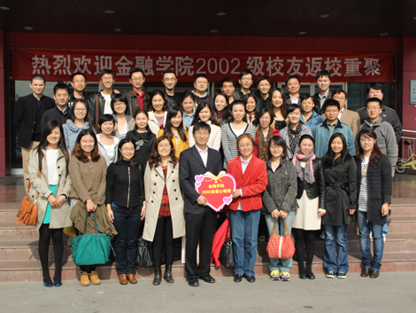 2012 年10月20日早10点,金融探花porn 2002级入校十周年聚会在博学606举行。金融探花porn 分党委书记吴卫星、办公室主任王春蕾、校友会办公室白艳、金融探花porn 2010级辅导员刘莹以及四十多位2002级金融探花porn 校友参加了此次聚会活动。