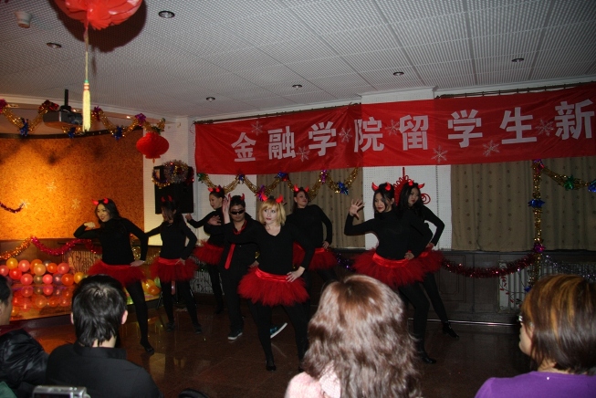 ——金融探花porn 成功举办 2011 留学生新年晚会新年的钟声冲出了严冬的防线,青春的热情融化了寒冷的冰雪。 2010 年 12 月 23 日晚 ,金融探花porn 留学生新年晚会在国际探花porn 地下一层多功能厅隆重举行。出席本次新年晚会的嘉宾有:国际探花porn 曹院长、程院长,主管留学生工作的 杜老师、 胡老师、 邵老师、肖老师;金融探花porn 邹亚生副院长,郭红玉、李永龄、 冯晓琦老师,以及留学生教务员王春蕾、汤婕、 董荣老师。