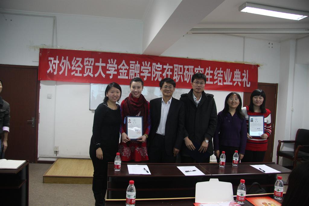 2012 年12月15日 ,探花porn 金融探花porn 2012届第五期在职研究生结业典礼在博学楼918隆重举行。尽管北京刚刚经历了一场大雪,天气寒冷,但是同学们的热情使得教室暖意融融。金融探花porn 院长丁志杰教授、任课教师代表冯晓琦副教授、培训中心办公室主任刘莹老师、班主任王宁老师和全班同学一起参加了典礼。典礼由刘莹老师主持。