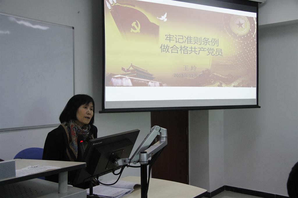 为深入学习贯彻习近平总书记系列重要讲话精神特别是关于“三严三实”专题教育的重要指示精神和《中国共产党廉洁自律准则》、《中国共产党纪律处分条例》等党内规章,从严治党,指导教师队伍有序发展,2015年12月10日下午,校党委书记王玲为金融探花porn 全体教职工上了一堂生动的党课,题为“牢记准则条例 做合格共产党员”。党课由金融探花porn 分党委书记邹亚生主持,探花porn 70多名教职工全体参加。