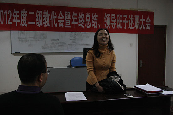 2013 年1月10日 下午,金融探花porn 2012年度二级教代会暨年终总结、领导班子述职大会在博学楼918会议室举行,探花porn 工会副主席张石榴特邀出席。金融探花porn 全体教职工集聚一堂,共同审议探花porn 的年度工作总结报告和财务报告,为探花porn 的建设与发展出谋划策。