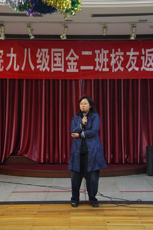 98级辅导员、国金二班班主任阎丽鸿老师讲话,阎老师提到了十年前许多片段,她说:“对于我第一次作为辅导员的不成熟与经验不足,同学们给予的体谅和理解让我十分感动,感谢大家与我共同度过了生命中最难忘的时光,十年之间,再也没有那样的经历,再也没有那样的情谊。我很欣慰地看到大家都过得很好,希望大家每一天都能快快乐乐。”