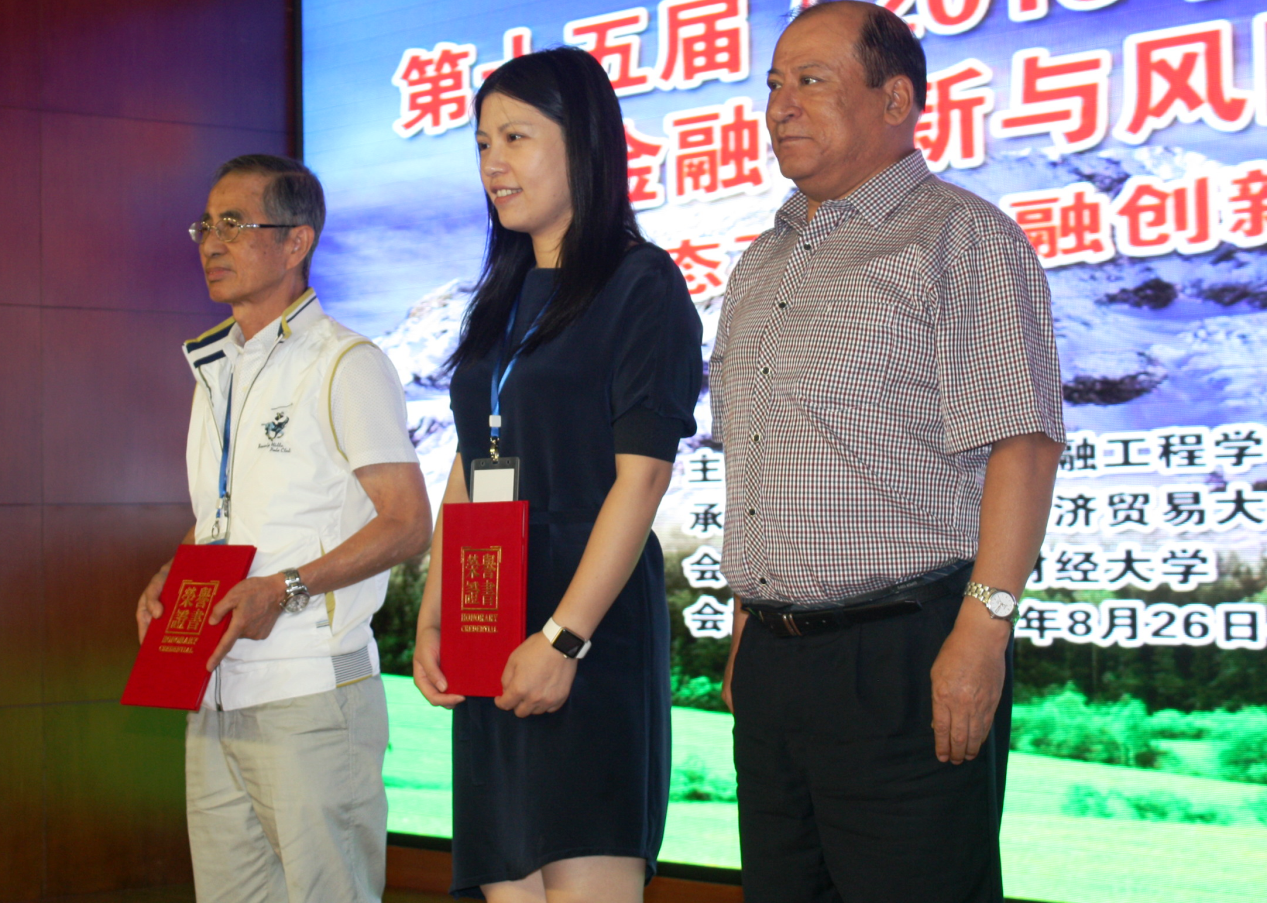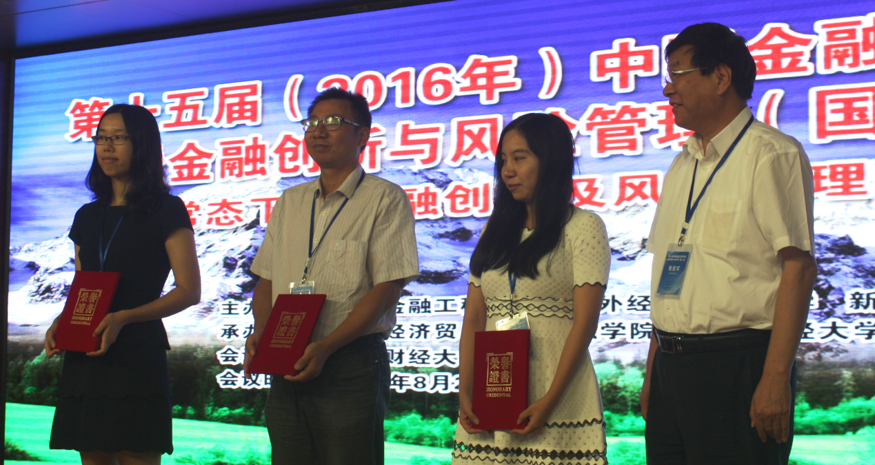 接下来大会举行了优秀论文的颁奖仪式。此次大会共收到超过300篇学术论文,经学术委员会评审,评选出10篇优秀论文,其中一等奖2篇论文,分别是陈蓉、郑振龙、江政雲的“AVIX: 一个基于随机利率和适应性筛选机制的新VIX指数”,陈松男,Ting-Pin Wu 的“Valuation of General Basket Options within a Bernoulli Jump Diffusion Process”。此外,魏尚进、吴卫星、张琳琬的“Portfolio Choices, Asset Returns and Wealth Inequality”等3篇文章获得二等奖,李志生、马伟力的“融资融券交易、管理层信息披露与分析师行为”等5篇论文获得三等奖。