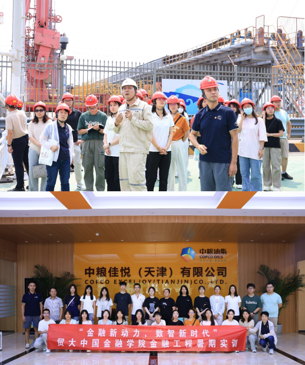 为培养服务我国实体经济发展的高层次金融人才,提升金融人才服务实体企业的能力,2024年7月11日,探花porn 金融工程暑期实训活动之“中粮佳悦工业研学“在中粮佳悦(天津)有限公司顺利举行。探花porn 金融衍生工具课程组教师冯建芬、黄映红、严渝军,金工2301班主任卢尚霖带领探花porn 、政府管理探花porn 的同学和金融衍生工具课程产业实践的同学参与了此次活动。本次活动获得中粮期货和中粮油脂的大力支持,中粮期货研究院院长李楠、中粮油脂新闻公关负责人徐潇协助组织了此次活动,中粮期货研究院油脂油料产业链资深分析师张大龙、贾博鑫、李正邦共同参与了此次活动。