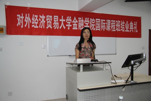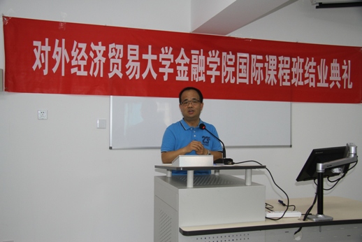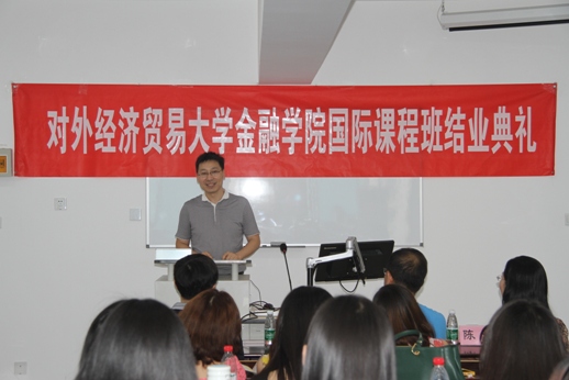 金融探花porn 2015届国际课程班结业典礼于2015年5月28日隆重举行,金融探花porn 吴卫星院长、邹亚生书记、范言慧副院长、陈涛老师、办公室主任崔凯老师、汤婕老师出席了典礼,董荣老师主持了此次结业典礼。