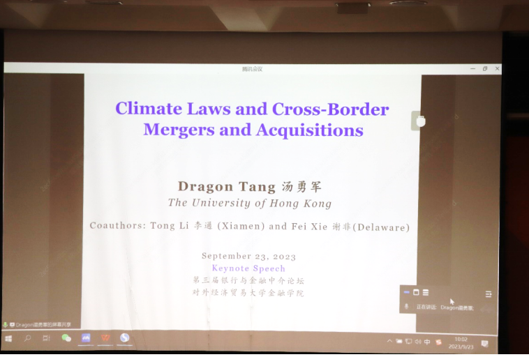 香港大学汤勇军教授在线上分享有关气候立法和跨国并购的研究。近年来,气候的变化促使“碳中和”的议题成为各国焦点,其与经济发展之间的紧密联系深刻影响着国际贸易。汤勇军教授以是否颁布气候法为自变量,对世界各国首部气候法颁布后对其跨国并购的影响进行了量化研究,并得出与气候法相关的诸多重要结论。