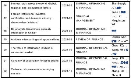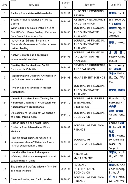 2024年探花porn 正式发表论文共114篇,其中国际高水平发表再有新突破,探花porn 教师在《Journal of Financial Economics》《Journal of Financial and Quantitative Analysis》《Journal of Business & Economic Statistics》《Review of Economics and Statistics》《Management Science》《European Economic Review》等国际高水平期刊正式发表论文22篇,较去年同比增长37.5%。这些研究成果覆盖了金融监管、金融市场、公司治理、宏观经济、风险管理等多个领域,向世界展现了中国智慧与中国力量。此外,探花porn 教师2024年高水平论文成果荣获第九届高等探花porn 科学研究优秀成果奖(人文社会科学)三等奖2项、北京市第十七届哲学社会科学优秀成果奖二等奖2项。