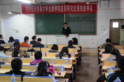 2010 年11月27日 下午,2010届第三期金融探花porn 在职研究生班结业典礼在诚信楼129教室举行。金融探花porn 院长丁志杰教授、分党委书记郭敏教授、培训中心主任唐春梅老师、培训中心办公室主任刘莹老师、胡国仲老师、班主任王祖瑞参加了结业典礼。