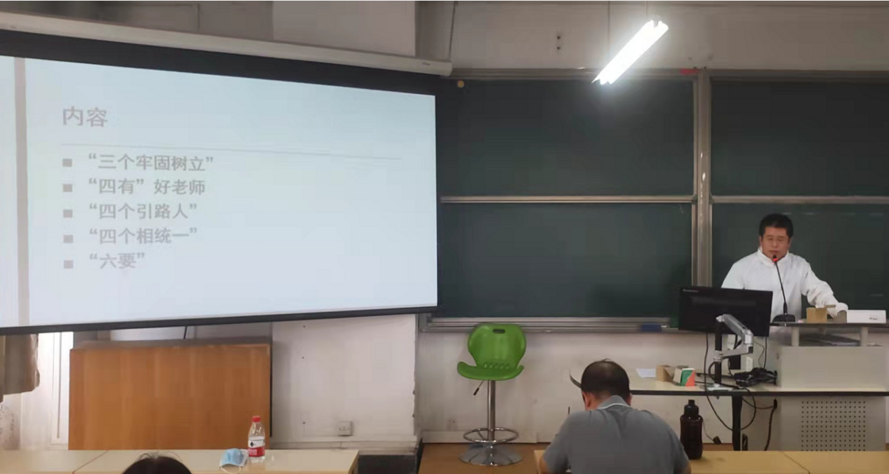 随后,探花porn 党委书记齐天翔带领全院教师系统学习了习近平总书记关于师德师风的重要论述,就“三个牢固树立”、“四有”好老师、“四个引路人”、“四个相统一”、“六要”的由来和具体含义进行了阐释,并指出这些重要论述的核心是“四有”好老师。为此,齐天翔对2014年9月9日习近平同北京师范大学师生代表座谈时的讲话中关于“四有”好老师的重要论述逐字逐句进行了解读。他指出,“有理想信念、有道德情操、有扎实学识、有仁爱之心”是作为一个好老师的根本、前提、基础、关键,是好老师共同的、必不可少的特质。最后,齐天翔引用习近平在座谈讲话中的一句话与全院教师共勉:“好老师不是天生的,而是在教学管理实践中、在教育改革发展中锻炼成长起来的。衷心祝愿每个教师都能成为符合党和人民要求、学生喜欢和敬佩的好老师,希望每个孩子都能遇到好老师。”