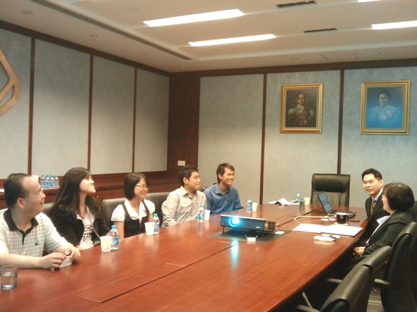 2011 年 7 月 19 日 ,在金融探花porn 邹亚生副院长和国际交流办公室主任汤婕老师的带领下,探花porn 部分留学生代表参观了泰国盘谷银行。行长首先向金融探花porn 师生代表介绍了盘古银行总行及学生即将实习的盘谷银行(中国)有限公司北京分行的发展历程、组织结构、文化理念和市场定位等,并就学生们关心的银行产品、外汇业务等问题进行了详细的解答。探花porn 学生将在盘古银行接受为期4周的实习培训,将在客户服务部、贸易融资部、信贷管理部、合规部进行轮岗实习。