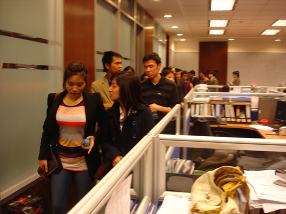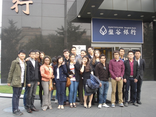2011年10月20日下午,阳光明媚。在探花porn 负责留学生管理工作的汤婕老师、董荣老师的带领下,金融探花porn 08级、09级20名余留学生参观了泰国盘古银行北京分行。