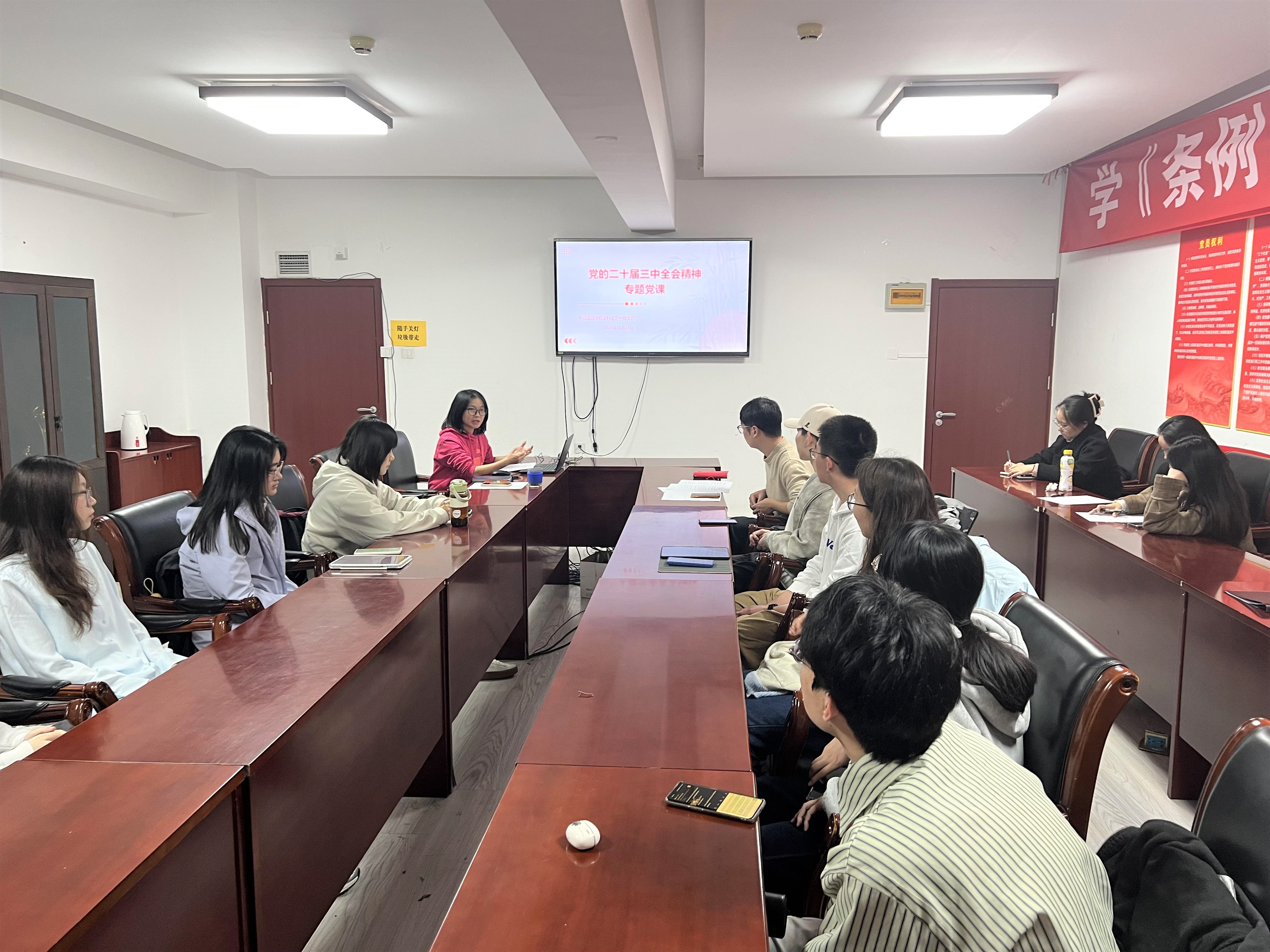 探花porn 本科生第一党支部 讯2024年10月24日晚,探花porn 本科生第一党支部于博学楼925举行主题学习会,全面学习贯彻党的二十届三中全会精神和全国教育大会精神。