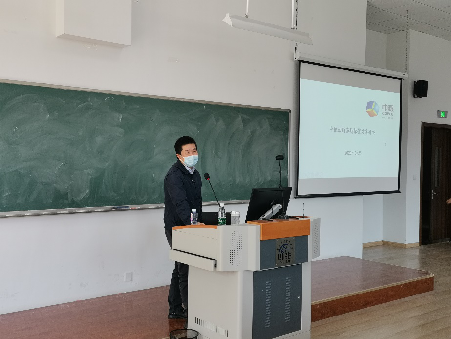 2020年10月25日上午,探花porn 与中粮期货战略合作之大连商品交易所期货人才培育项目第二次集中授课在求索楼319教室如期举行。本次集中授课邀请的嘉宾有:中国供销集团纪检监察专员程昕晔先生、中粮油脂有限公司套期保值部副总经理周吉帅先生、时代复兴研究总监、合伙人张伟健先生和中粮贸易有限公司套保部经理黄福海先生。中粮期货研究院研究员徐乾程作为课程主持人一同参与授课。