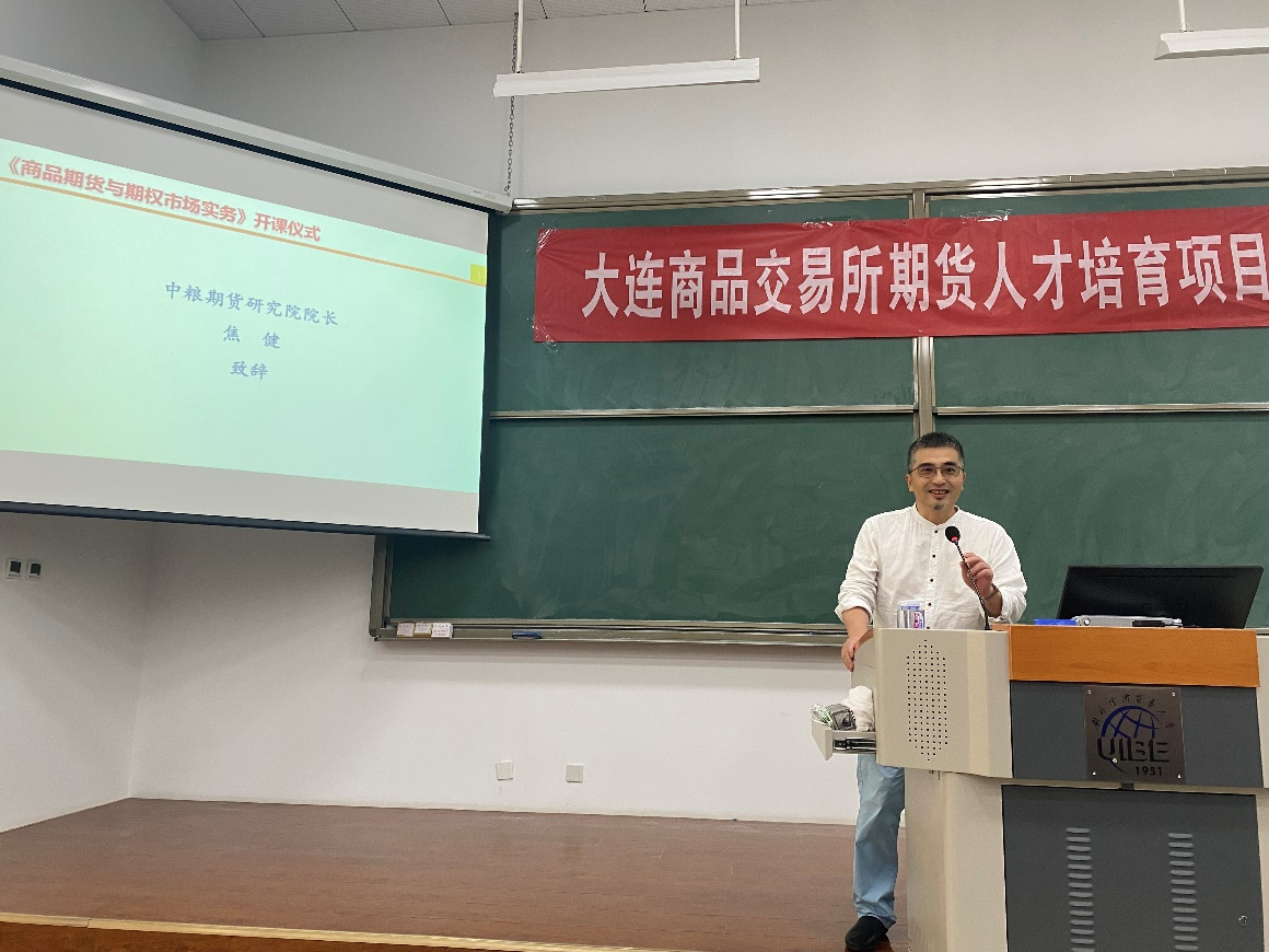 开课仪式在同学们热烈的致谢掌声中结束。之后,焦健先生进行了《商品期货与期权实务》课程首次授课,主题为”中国期货市场的发展历程”。
