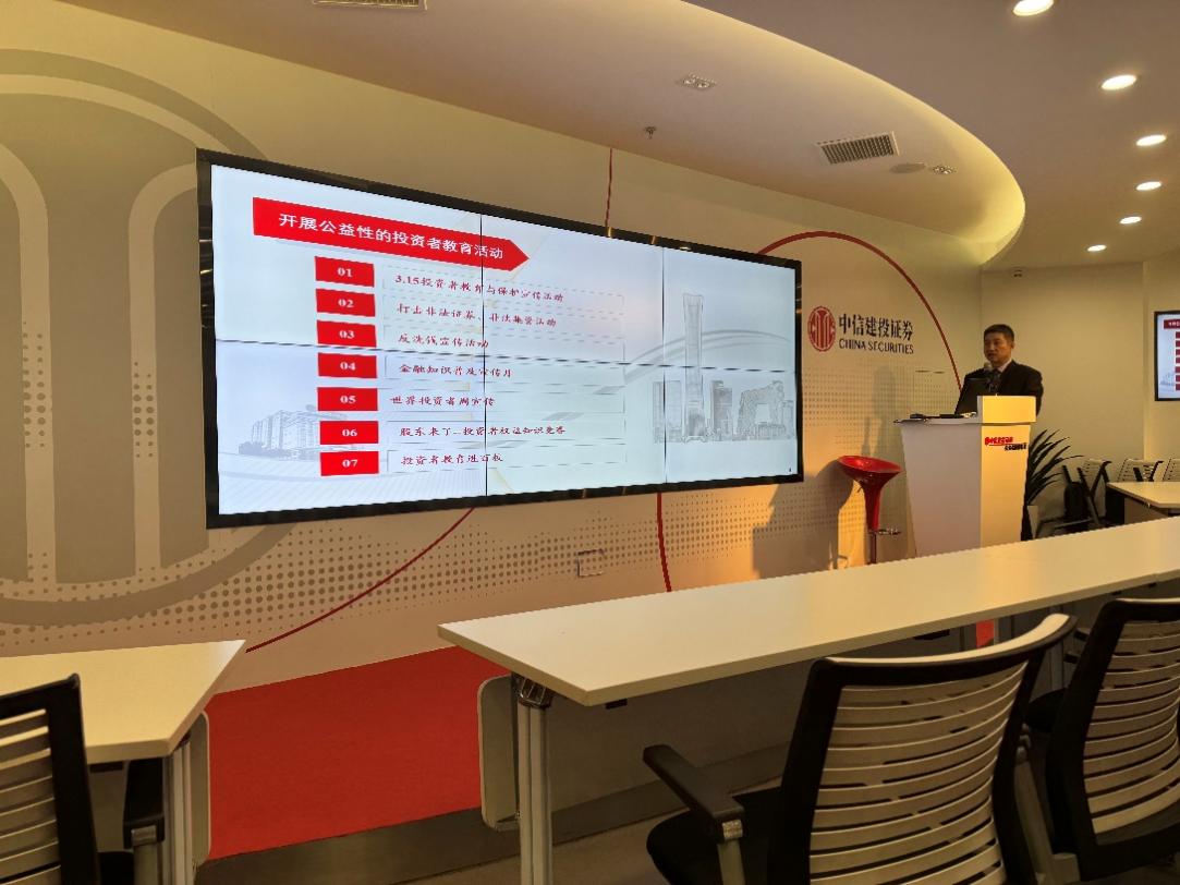 随后,中信建投证券法律合规部副总裁李强先生为同学们带来了精彩的讲座。在讲座上,李强先生介绍了中信建投建设公司的前世今生及发展历史,并进一步讲解了证券公司开展投资者教育工作的详细情况,使同学们对证券行业有了更为深入的认识。之后,李强先生为同学们展示了反洗钱和时光小卖部两个制作精良的宣传片,并教育学生要保护个人信息安全,做一个遵纪守法的金融人。