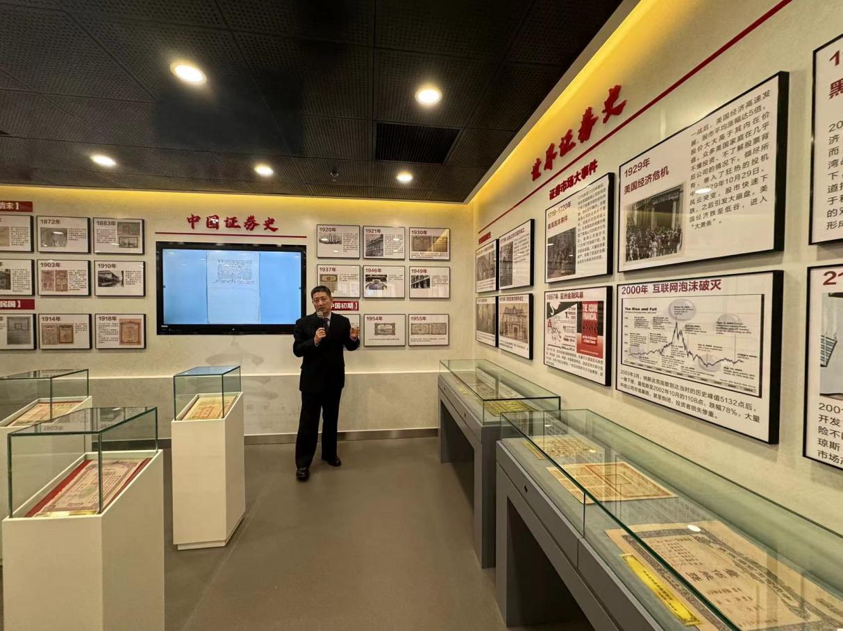 最后,同学们共同参观京信学堂,李强先生依次对世界证券史、中国证券史与股票实物等展台进行讲解,带领同学们从历史纵向视角、国际横向视角、世界宏观视角与国家微观视角领悟金融行业的发展,使同学们对金融行业的热爱更加厚植于心。