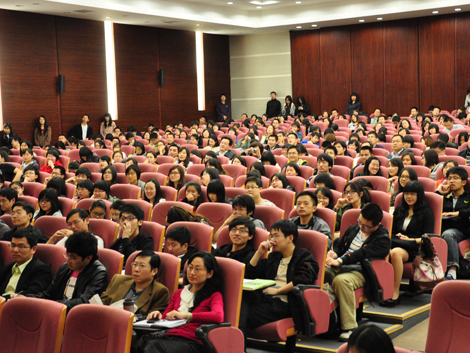 其后,校友论坛之《资本的力量》大讲堂正式开始。本次讲座的主题为多层次资本市场、投资与融资。主讲嘉宾张江和黄晓捷先后上台进行演讲,张江谈及了现今资本市场的巨大改变,如股票分置改革与创业板的推出,并简略地分析了改革后的金融市场变化。黄晓捷则介绍了自己所在的PE行业的发展大背景与大趋势。两位嘉宾作为金融探花porn