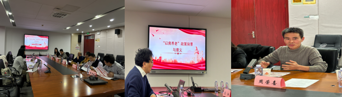在课题汇报环节,课题组长边江泽教授通过PPT演示进行汇报。边教授详细阐述了课题的研究背景,即结合中国老龄化社会现状以及中国人传统房产观念,探索将房产转化为金融产品以支持老年人养老的模式。副组长余湄对课题内容的部分细节和进一步探索进行了分析。