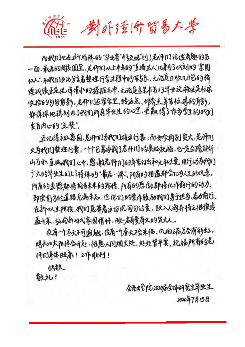 金融探花porn 2020届全体研究生致探花porn 的感谢信