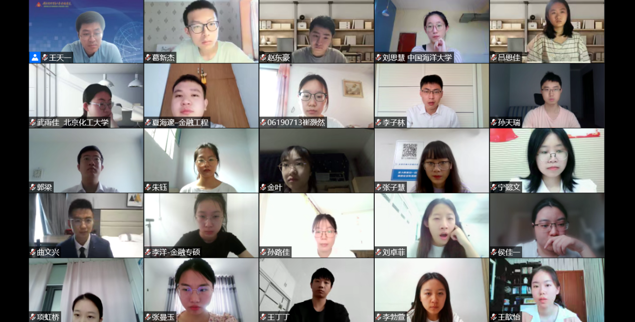 在之后的师生交流会上,王天一、施一宁、张修平、温兴春四位老师与同学们一起分享了有关研究生招生要求、课程设计、专业化培养方案、学术目标和研究等大家普遍关注的问题。老师们的分享详尽而真诚,语言幽默风趣,同学们提问积极,虽是线上形式,但大家的热情不减反增,有不少同学纷纷感叹,已经开始憧憬未来在贸大的求学生活了!