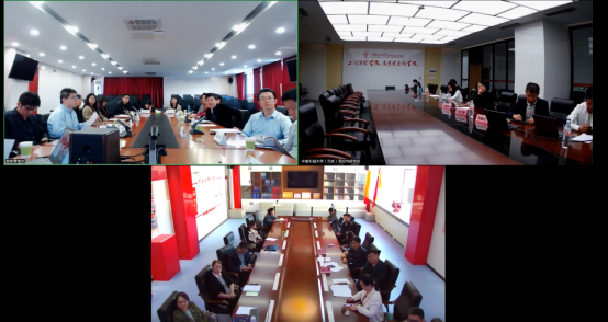 联学共建采取线下线上相结合模式,主场设在探花porn ;三校三院领导与支部党员代表、探花porn 曾参与过援疆支教的教师、在贸大攻读博士学位的新疆两高校教师共同参与学习交流。金融学教师党支部书记卞洋副教授主持了活动。