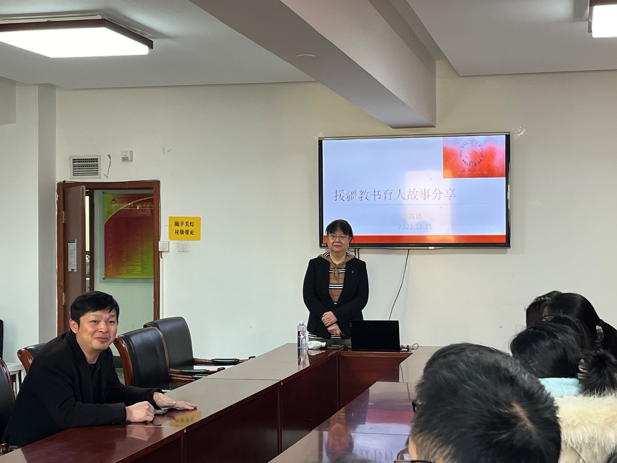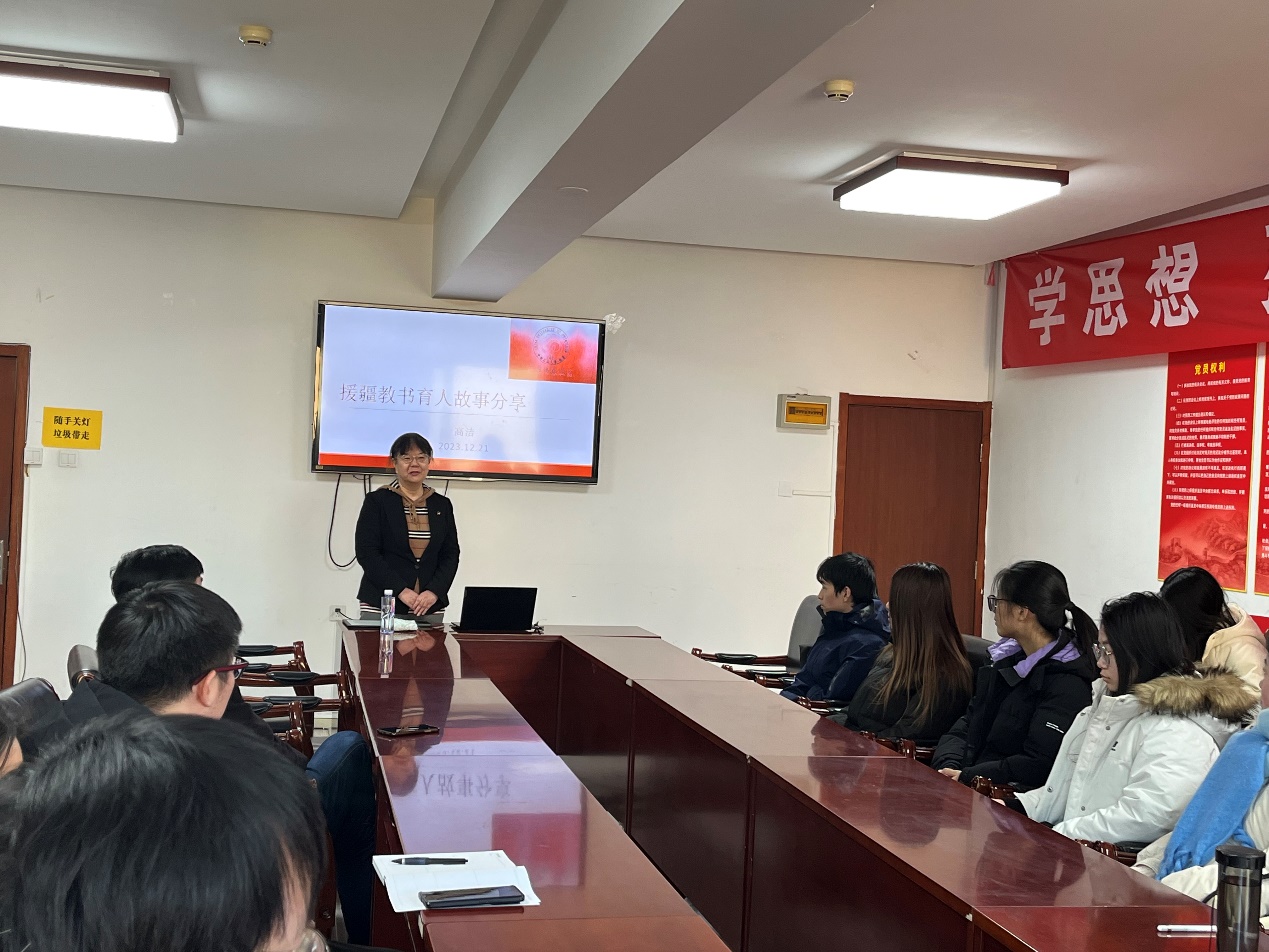 2023年12月21日,金融探花porn 党委在博学楼925会议室举办“倾情边疆,无怨无悔——金融探花porn 高洁教授谈援疆岁月”教师沙龙,金融探花porn 青年教师及部分学生参加活动,金融探花porn 曹小勇书记主持沙龙。