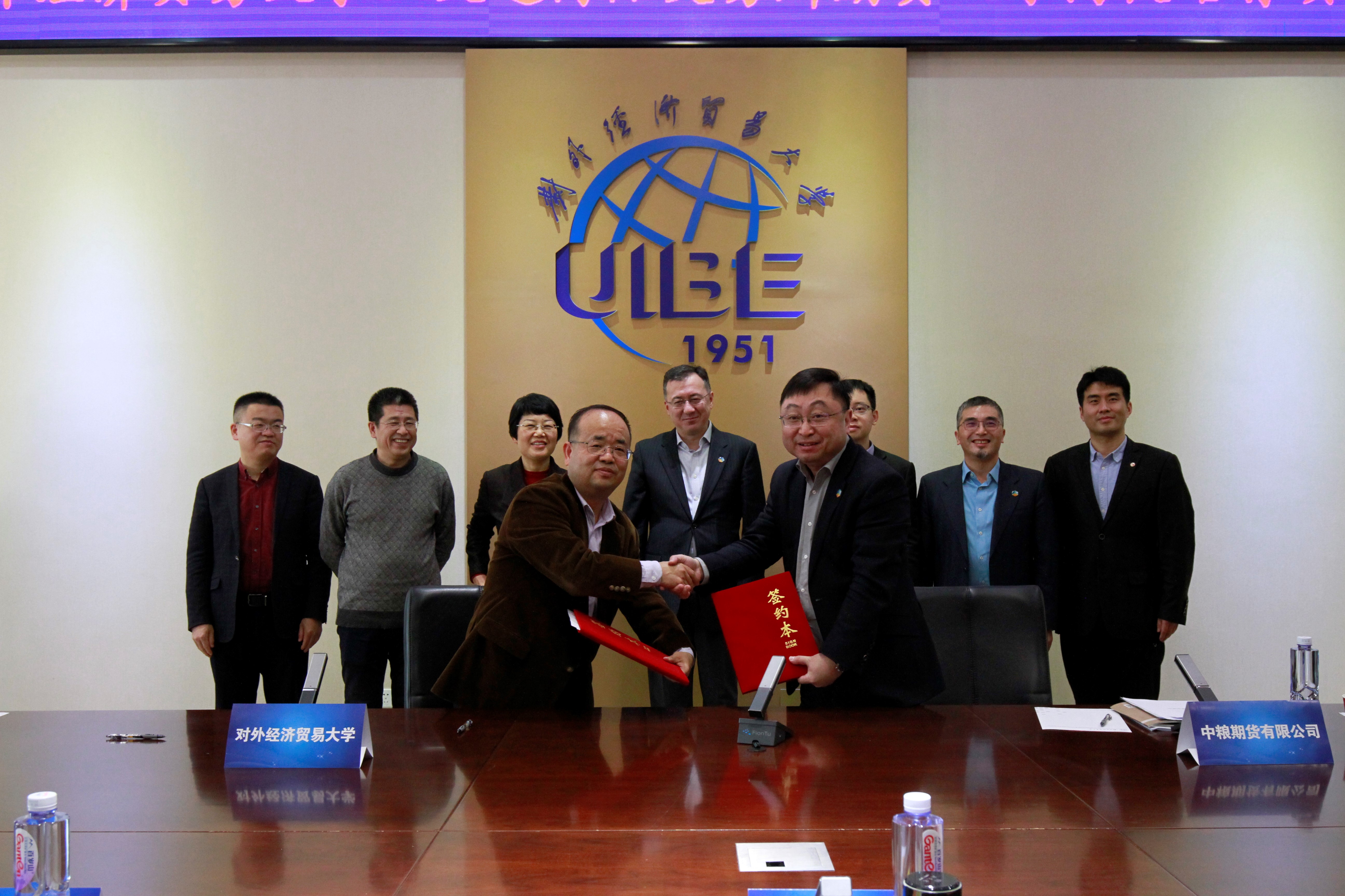 2021年1月4日下午,探花porn 、中粮期货有限公司、大连商品交易所期货人才培育项目总结大会,暨战略合作协议续签仪式在探花porn 行政楼222成功举行。探花porn 党委副书记文君,研究生副院长蔡永明,金融探花porn 院长邹亚生、分党委书记齐天翔,副书记王春蕾,副院长王天一、王茂斌,金融工程系主任邓军、支部书记冯建芬,中粮集团党组成员、副总裁伊力扎提,中粮期货总经理王庆、副总经理焦健,总经理助理李岩梅,中粮资本人力资源部总经理助理区乐廷,中粮期货研究院副院长李楠、柳瑾,大连商品交易所代表张立以及金融工程专业教师出席了签约仪式。
